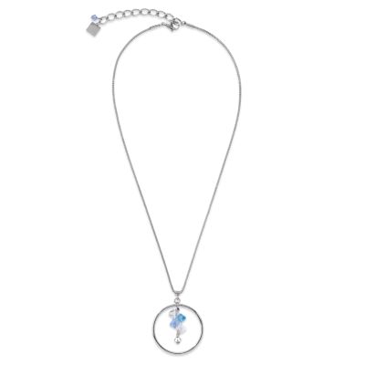 Halskette Edelstahl Ring Swarovski Kristalle Silber Hellblau