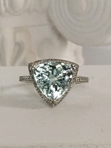 Aquamarine Trilliant Ring 5 Ct 14k White Gold With Diamonds